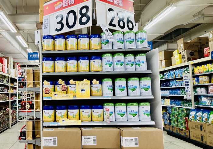 北京沃尔玛超市,飞鹤、达能蕴荟奶粉拥有较好的陈列位置。(图片拍摄:赵晓娟)