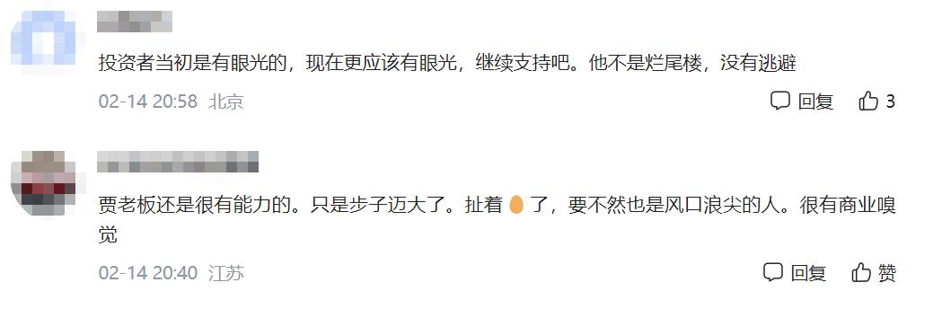 在此,只愿贾老板不要辜负那些支持者的期望吧。