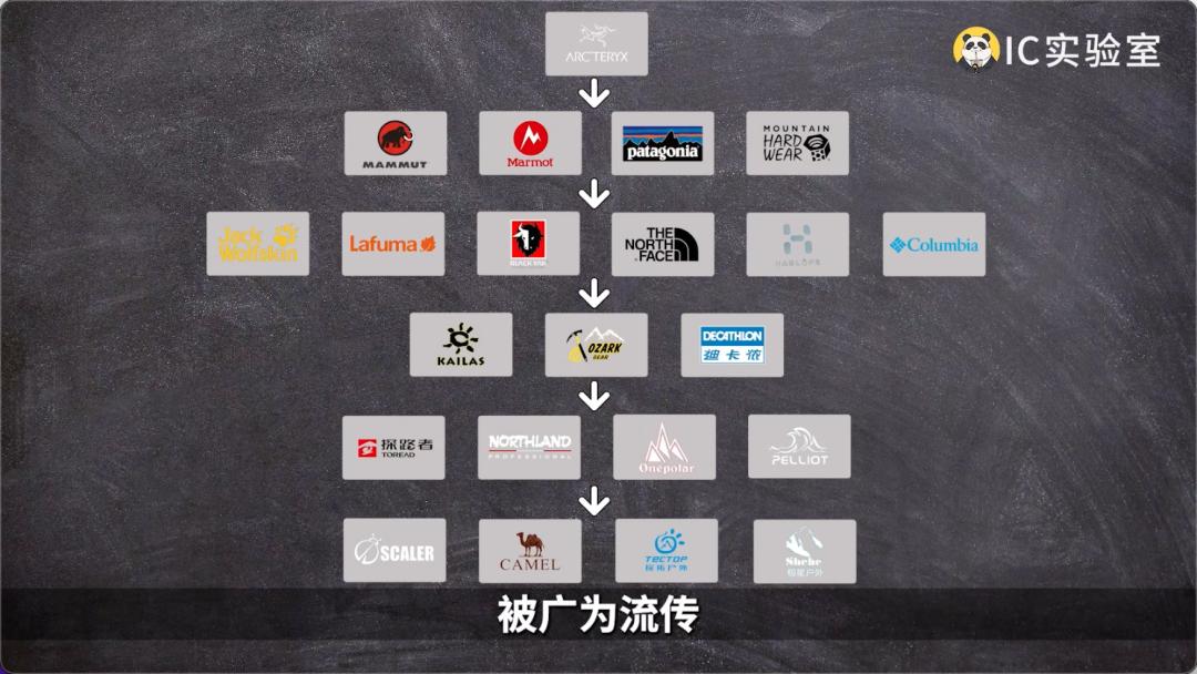 之前有户外玩家做过一张户外品牌「鄙视链」的图片,被广为流传。一般认为,站在鄙视链顶端的是鸟象鼠御三家,也就是始祖鸟、猛犸象和攀山鼠。还有我之前内容提过的摇粒绒鼻祖,巴塔哥尼亚。