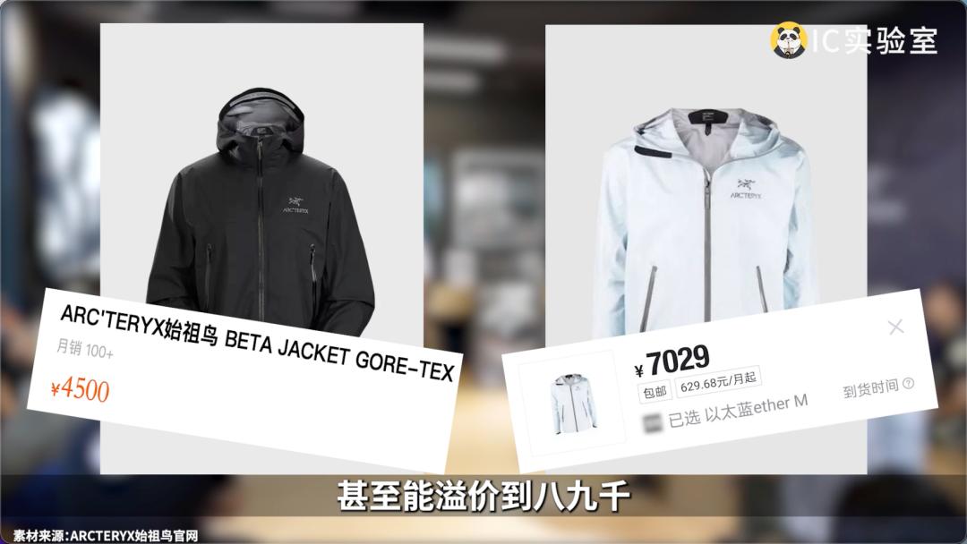 除了出圈外,始祖鸟跟它加拿大老乡另一个共同点就是贵。一件基础款硬壳官方售价高达4500,一些炒得比较火的颜色,甚至能溢价到八九千。
