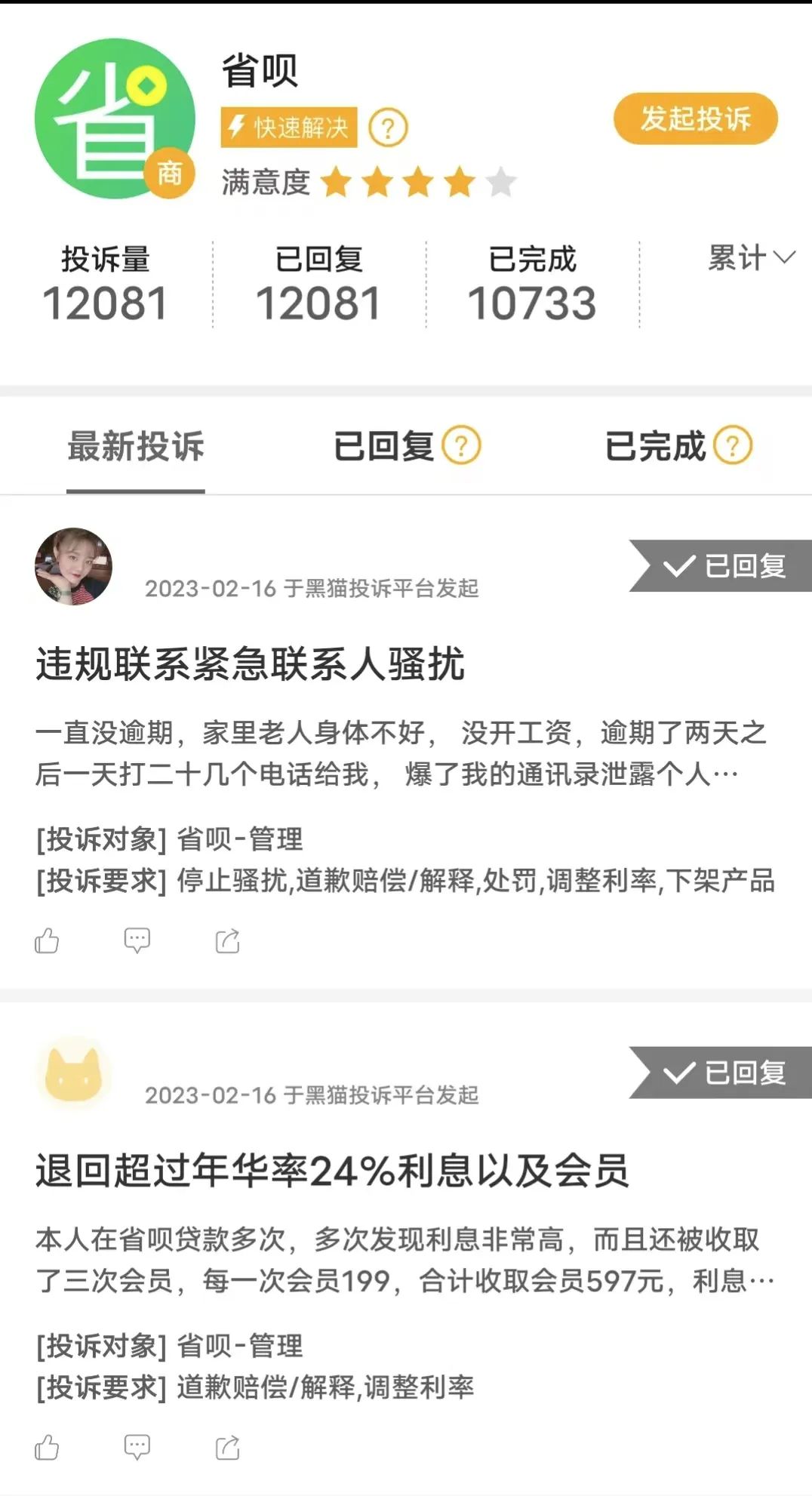 被315点名3年后,萨摩耶旧疾难除,省呗仅仅在黑猫投诉就超过万条,被投诉主要集中在高利贷、暴力催收、砍头息等方面。
