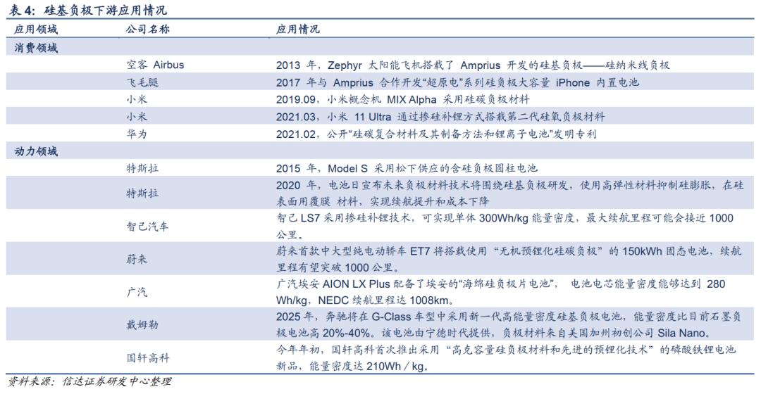 当前商业化的硅基负极主要为硅氧负极,其主要应用场景是高端线消费电子产品、小动力产品和少部分电动车车型。