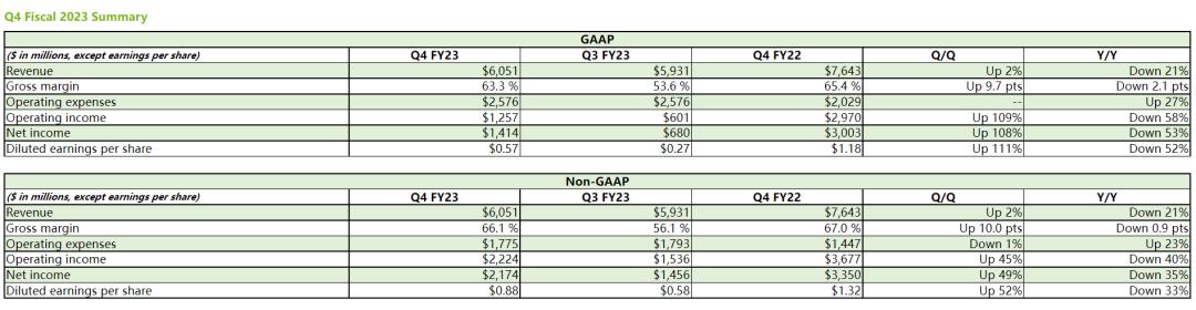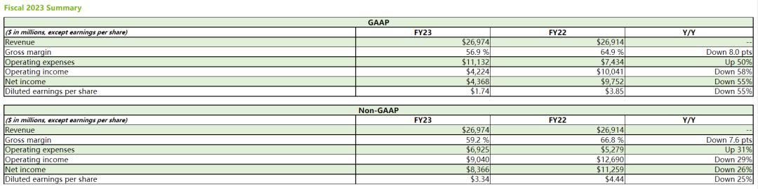 去年四季度,英伟达营收60.5亿美元,同比下降21%;净利润14亿美元,同比下降53%。虽然营收、利润同比均大幅下滑,但仍高于外界预期。受PC市场低迷等因素影响,外界对英伟达四季度及全年业绩下滑早已有心理预期。
