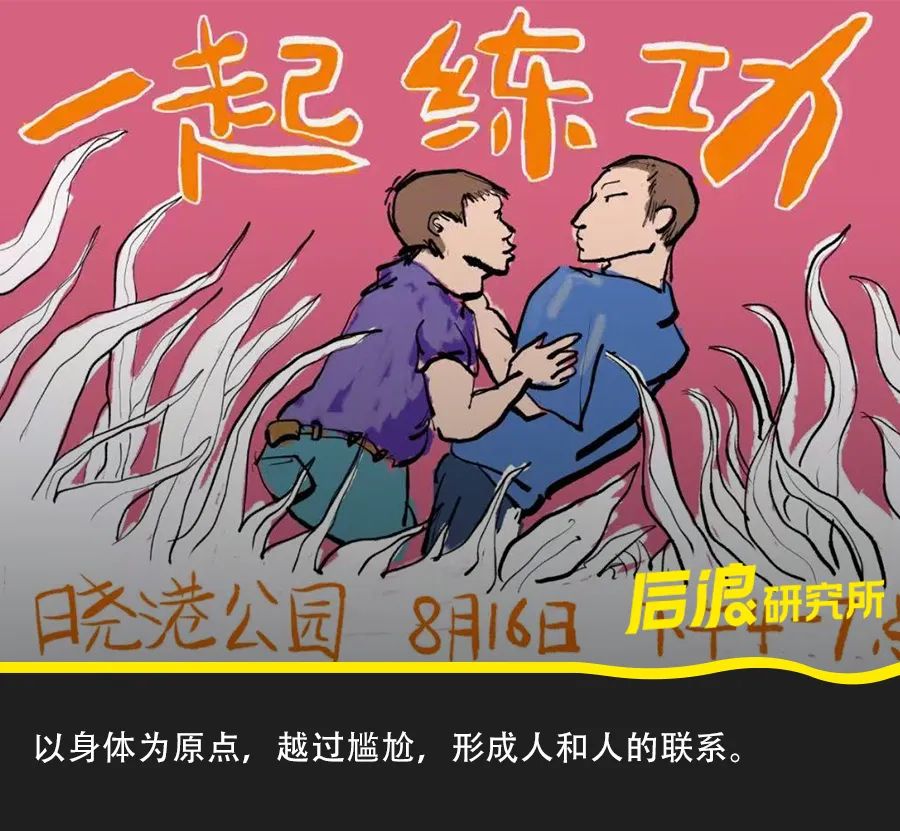 “以身体为原点,越过尴尬,形成人和人的联系”,人类学家项飚认为这是“一起练功”活动的最抓人之处。