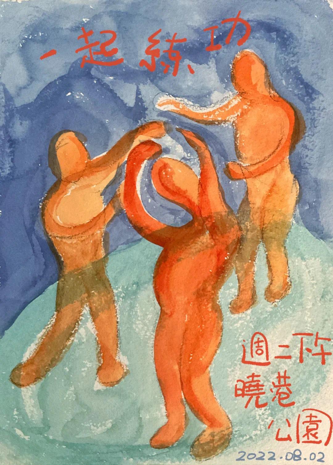 以广州为据点,这些交流发展出了“一起练功”,最初在朋友们家中轮流举办,2020年10月第一次开始公开活动。大多数时候,活动地点都在晓港公园的艇部,时间固定在周二下午三点,没有门槛,也不收取任何费用。
