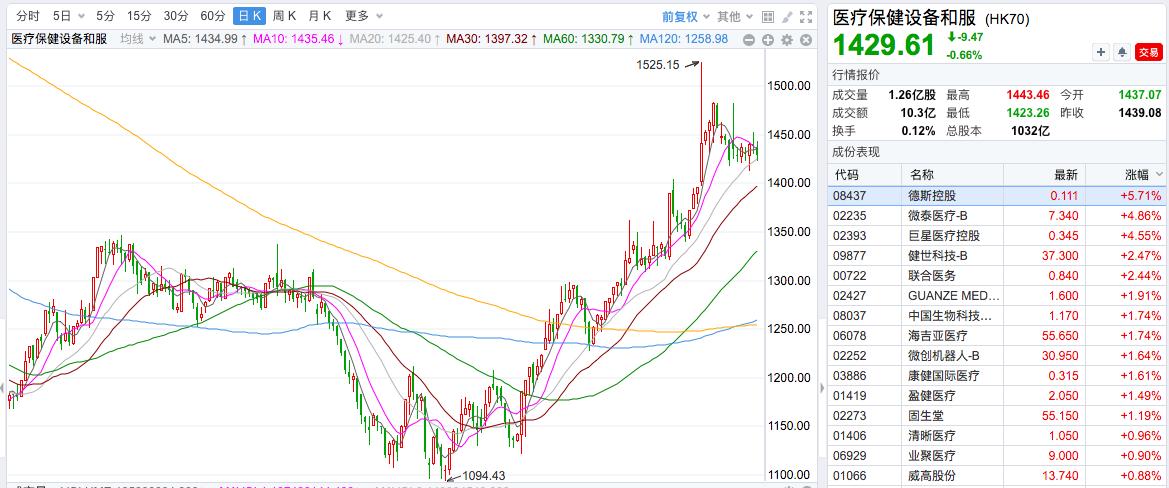 图|去年10月以来,港股医疗保健设备和服务、药品及生物科技指数持续走高