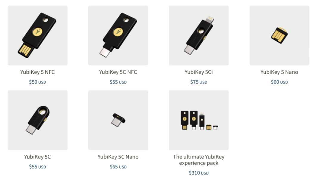 知名的安全密钥品牌 YubiKey 旗下的产品