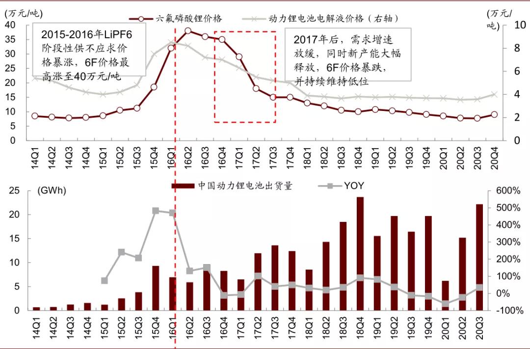 此外,你可能想不到,动力电池里面,不管锂电池还是即将派上大用场的钠电池,其基础都离不开“氟”元素。因为,锂电池的电解液需要六氟磷酸锂(LiPF6),而钠离子电池则需要六氟磷酸钠。