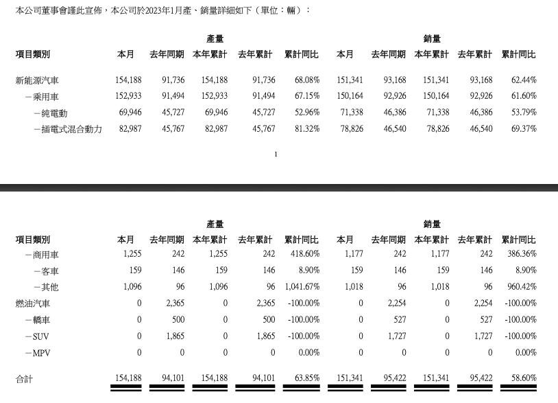 今年开年第一个月,比亚迪共计交付新车15.13万辆,相比去年12月的23.52万辆,环比下降35.67%。