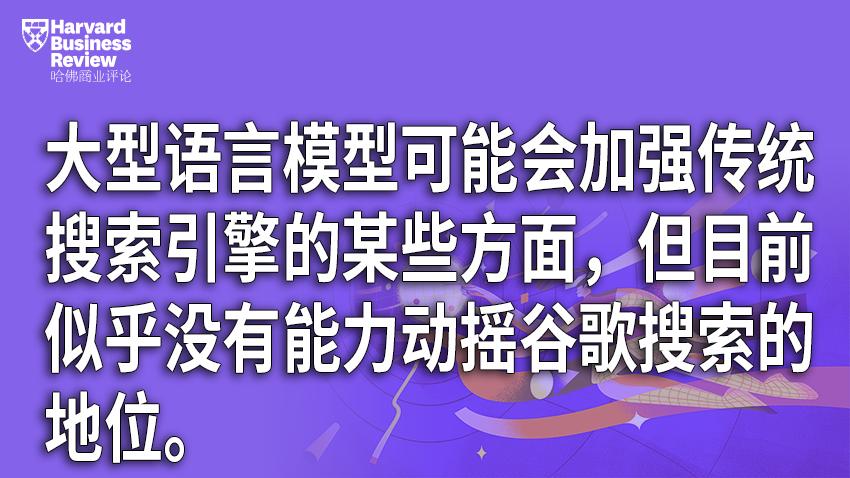 大型语言模型可能会加强传统搜索引擎的某些方面,但目前似乎没有能力动摇谷歌搜索的地位。不过,它们可以发挥更为颠覆性和革命性的作用,改变其他类型的搜索。