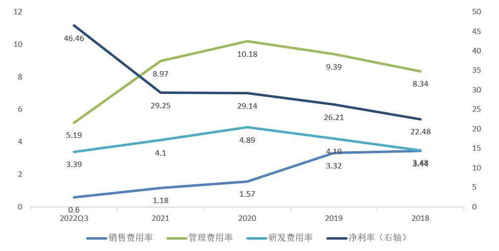 本来,石英股份的期间费用就不算更高。2021年公司的管理费用率/销售费用率/研发费用率分别仅为8.97%/1.18%/4.1%。2022年随着公司营收规模的增加,期间费用率开始被动下降。