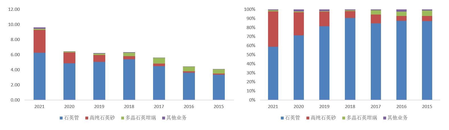 尽管目前石英股份身上最强的烙印是高纯石英砂,但是在此前很长一段时间里,石英管才是公司的核心业务。