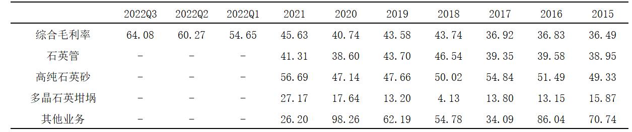 并且,石英管业务其实也很挣钱。从毛利率水平来看,公司石英管业务的毛利率长期维持在40%左右,表现非常优异。