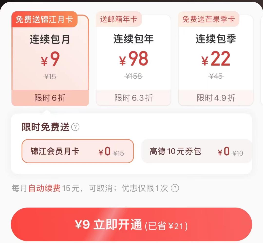 以 网易云音乐 为例,原价15元的黑胶会员,自动续费首月为9元。