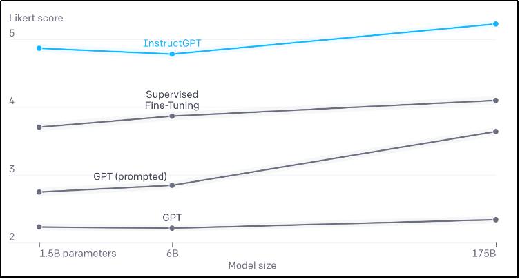 各阶段训练在ChatGPT模型上产生的效果评价(图源:openAI官方博客)