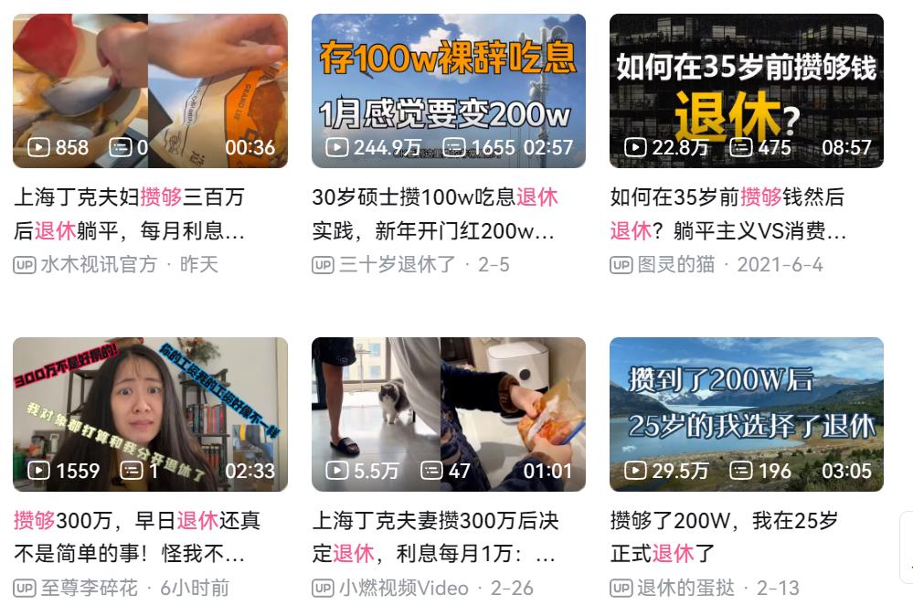 最近,就有一些攒够这部分钱的UP主,分享着自己提前退休的生活。