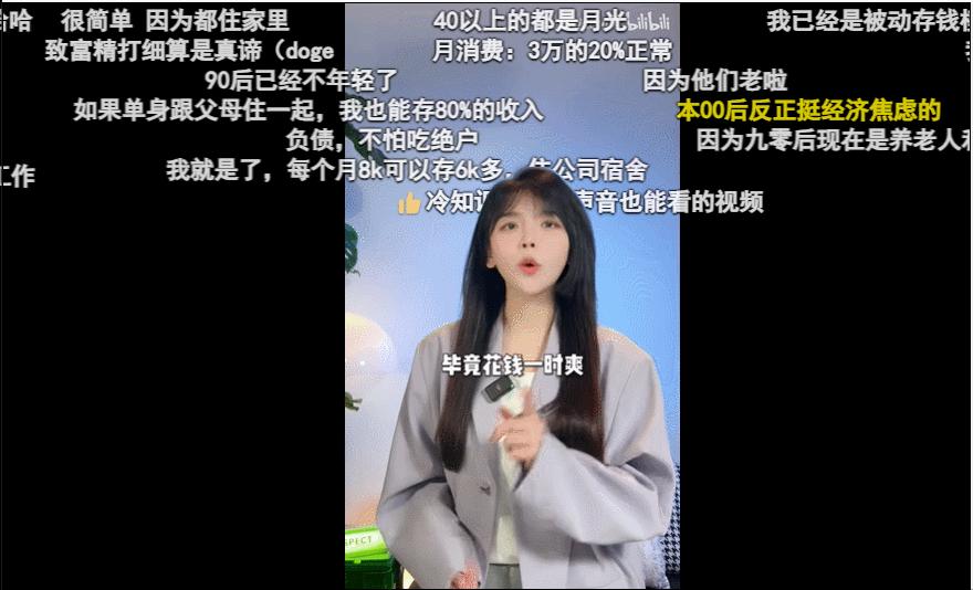UP主@无处安放的小A一针见血地总结这波存钱潮,“从怎么花钱是我的自由,到没有存款就没有自由;从花钱一时爽,到有钱一直爽。月光族肉眼可见地走在了濒临绝种的路上”。