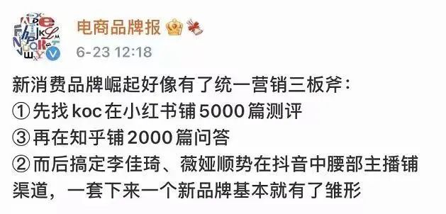 对于这样一个“新品牌”的崛起,业内也逐渐形成了统一的营销三板斧认知:小红书+知乎+大主播。