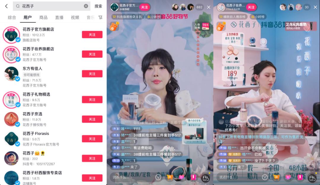 到了11月,花西子参与抖音直播的自播账号仅剩3个,可见品牌跑通单一渠道的自播并没有那么容易,但是花西子的全渠道自播矩阵随之坚挺起来。
