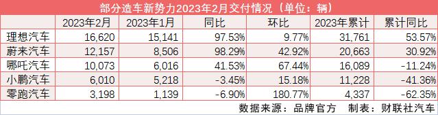 造车新势力2月交付量回暖:理想连续6个月销量破万,零跑期待触底反弹