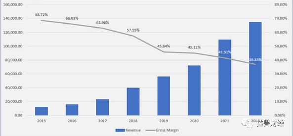 那么我们应该把亚马逊当做成长型股票还是价值型股票来评估呢?如果我们从增长的角度来看待亚马逊,该公司仍然不便宜,其毛利率为13.16%(毛利率一直在逐年增长),营业利润率为2.38%,这说明该公司在未来几年应该还能继续增长。