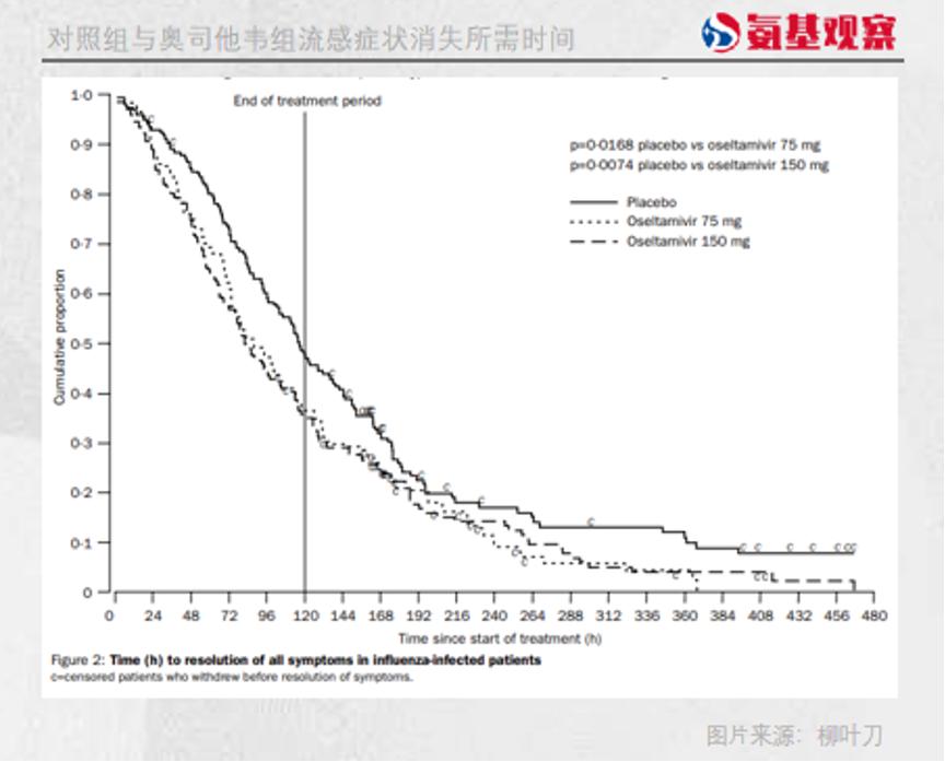 2000年,医学顶刊《柳叶刀》公布了一项,奥司他韦治疗流感的疗效的临床试验结果。具体来说,75mg和150mg的奥司他韦分别能够将患者的病程缩短29小时、35小时。