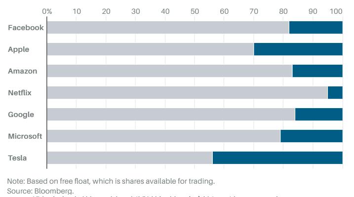 机构投资者和散户投资者对大型科技股的持股比例对比