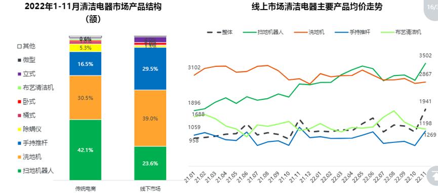 随着疫后放开,洗地机仍然保持着较快的增长态势。2022年洗地机行业就实现零售额同比增长72.5%,零售量同比增长88.2%;再据2022年1月奥维云网对清洁电器、集成灶、小家电、智能投影几个重点家电行业增量赛道的监测数据看,唯有清洁电器实现全渠道销售增长,线上线下零售额达到6.2亿元,零售量达22万台。