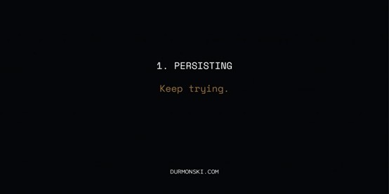 “坚持”是指坚持做一个任务或者朝着目标努力,直到它完成。除此之外,如果发现某件事是无效的,也要学会不固执地做同样的事情。你会持续前进,但在前进的过程中,可能为了前进而修改最初的策略。