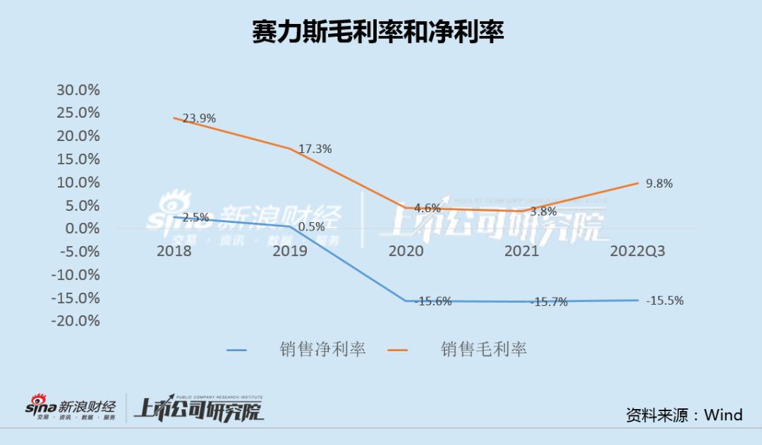 赛力斯的利润率表现,来源:wind数据、新浪财经