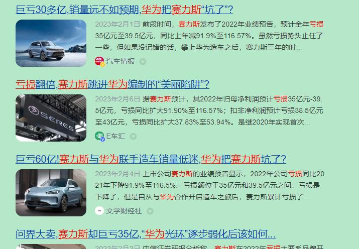 赛力斯与华为合作的问界,一直是赛力斯的亮点。而今面临巨亏,一时间“华为坑惨赛力斯”、“赛力斯陷入华为美丽陷阱”等说法甚嚣尘上。