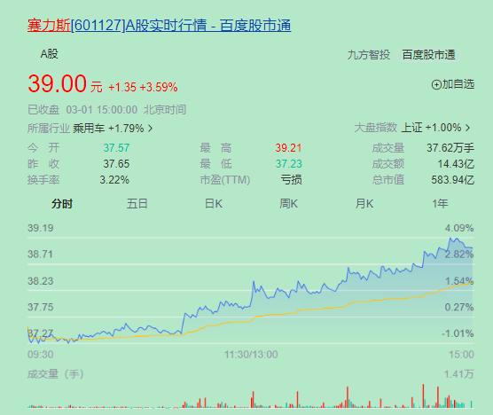 受此消息刺激,3月1日,赛力斯股价上涨3.59%,一扫之前连续多天的颓势。