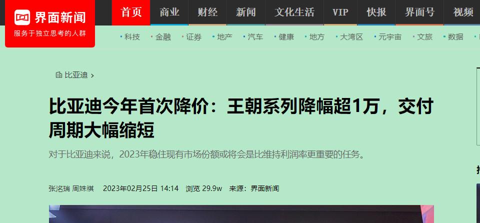 《智能网联汽车网》报道,比亚迪将在2023年挑战400万辆的销售目标。与特斯拉此前连续降价类似,若首次降价没有起到预计的效果,不排除比亚迪连续降价的可能性。
