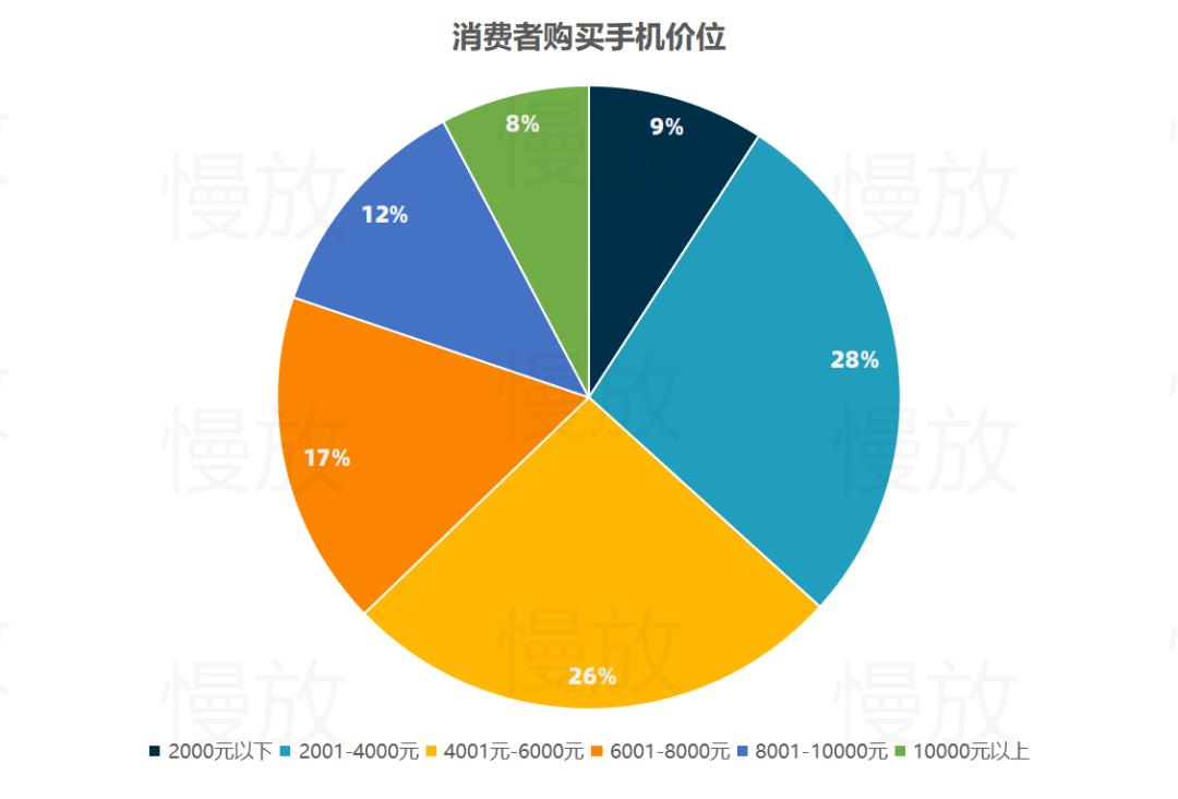 在手机价格方面,中端机型更受欢迎,2001-4000元以及4001-6000元价格带消费者最多,两者占比为28%和26%,6001-8000元的价格消费者锐减,仅为17%,手机价格在10000元以上的消费者不足10%。