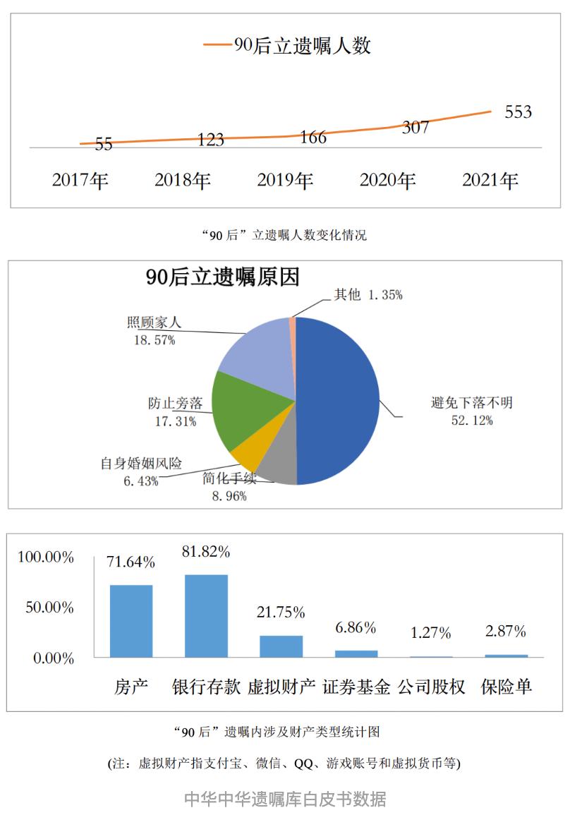 根据《中华遗嘱库白皮书》数据显示,截至2021年,90后立遗嘱总人数达到553人,较2020年增长了80%。