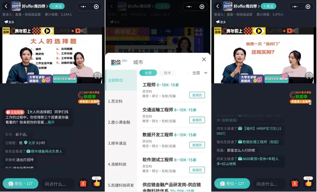 面对对手的来势汹汹,Boss直聘也没有坐以待毙。早在2021年春招期间,BOSS直聘就加入了直播带岗风潮,去年春招前还推出了一项面向制造业普工的保真职位识别计划“海螺优选”,欲在虚假招聘信息频出的蓝领招聘市场打出差异化优势。