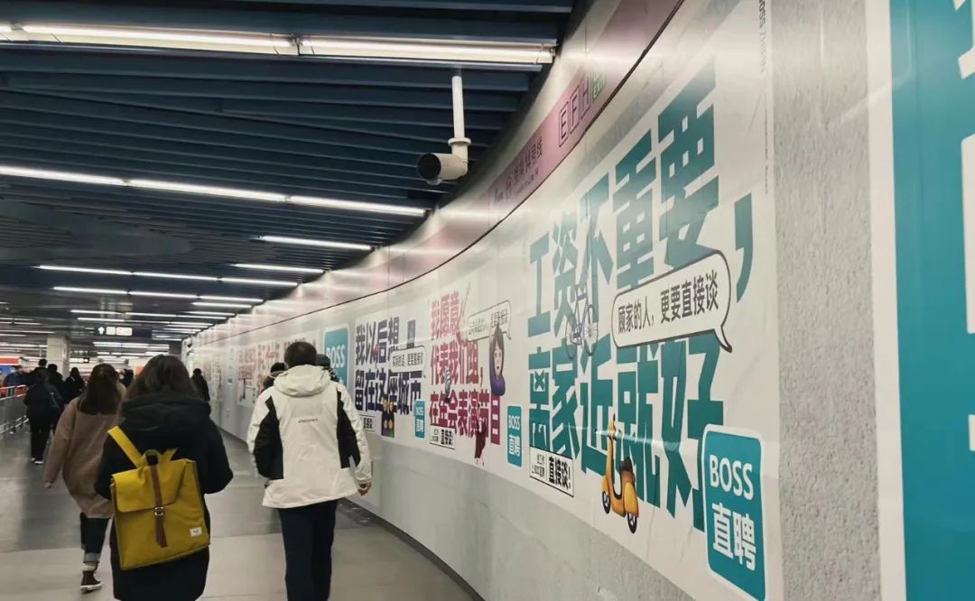 北京7号线地铁的通道、车厢内,四处张贴着的宣传广告,仿佛告诉行色匆匆的打工人们:在Boss直聘,找到一份心仪的工作并不难。