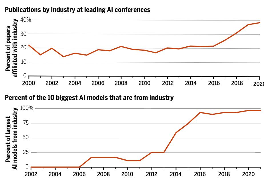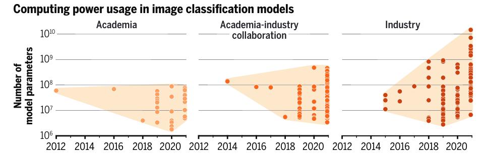 2023 年 3 月 3 日,来自麻省理工学院、弗吉尼亚理工大学的研究团队在权威科学期刊 Science 上发文,阐述了业界在“数据、算力与人才”方面的优势,并探讨了业界的这些优势可能带来的隐患,以及可行的对策。