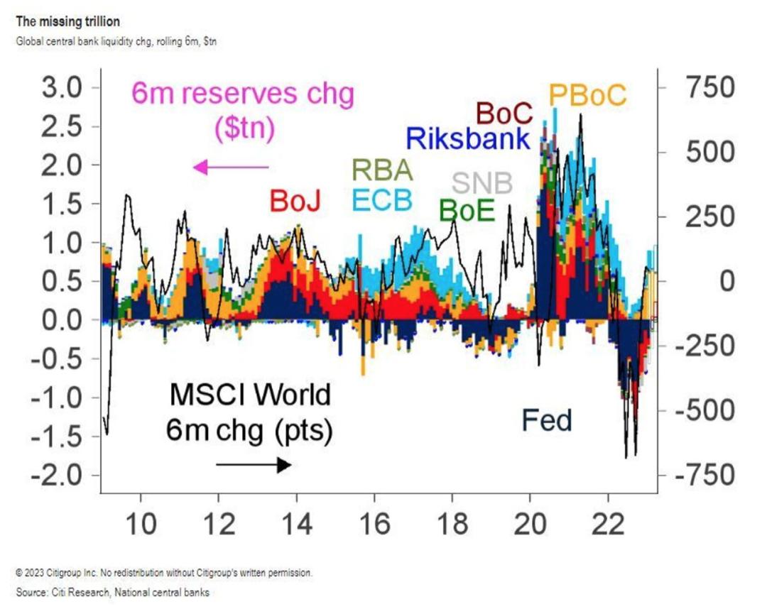 当他最终将全球股市走势与全球央行流动性的变化趋势进行对比时,他发现,这几乎是一种完美的契合。