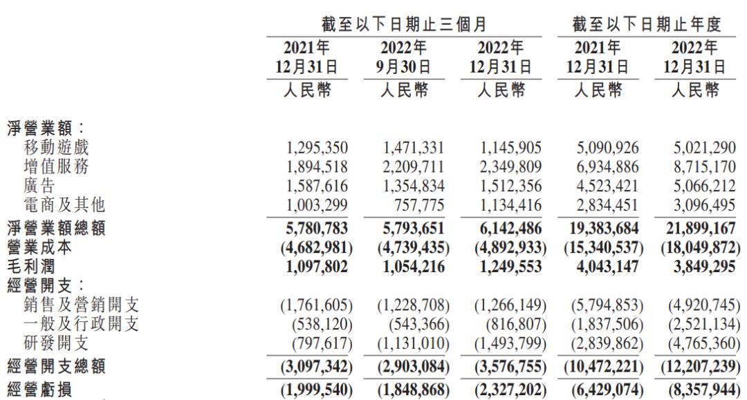 来自:哔哩哔哩 2022 Q4 及全年财报