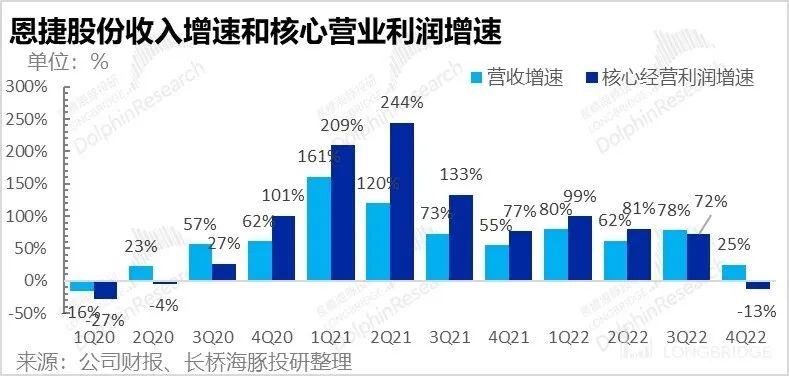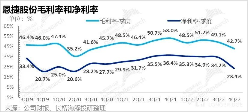 本来,作为全球湿法隔膜龙头,恩捷的优点是设备独供 + 先发布局下带来的产能相对优势,收入上体现的是高增长 + 高毛利。但这个情况到了 2022 年的四季度似乎已经完全变样。