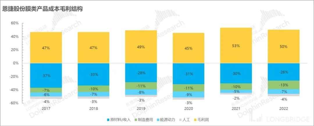 尤其是制造费率上行较快,这应该与产能利用率、出货量,确实需要考虑四季度疫情的影响,但涂覆膜让利应该也拉升了制造费用率。能源部分,公司的解释是四季度对于天然气和电费都执行了冬季价格,环比涨幅相对较大。