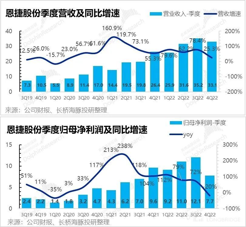 恩捷四季度收入快速放缓,收入 33 亿,同比仅 25%,上季度还有 78%;以往每个四季度都是出货的旺季,环比应该是高增,但今年四季度却成了环比下滑。