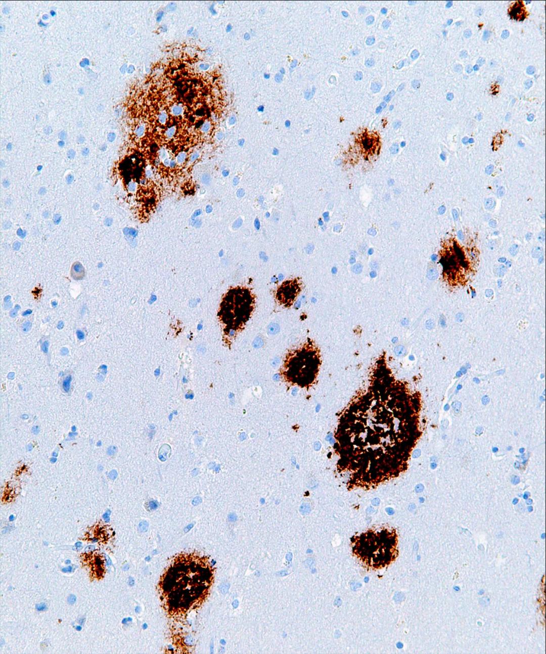 脑组织中细胞外的Aβ斑块(深色纤维)是阿尔茨海默病的一个特征。—Nephron