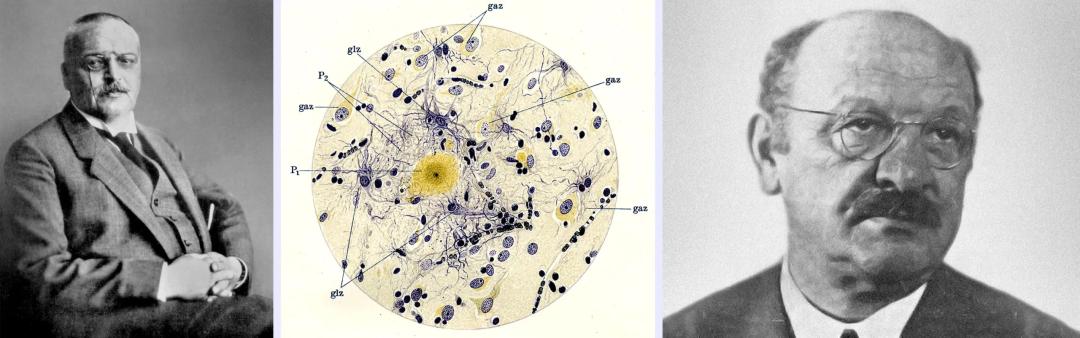 从左至右依次为:阿洛伊斯·阿尔茨海默;阿尔茨海默展示的一幅痴呆症患者脑中出现的斑块;奥斯卡·费舍尔。—From left: Science Source; Reprinted from Current Biology, 6/21, Ralf Dahm, Alzheimer’s discovery, 5, Copyright (2006), with permission from Elsevier; Courtesy of Filip em