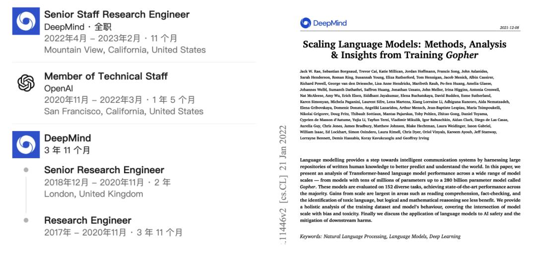 同期,Bauschkin 还是另一篇 DeepMind 在 2021 年发表的论文《Scaling Language Models: Methods, Analysis & Insights from Training Gopher》合著者。