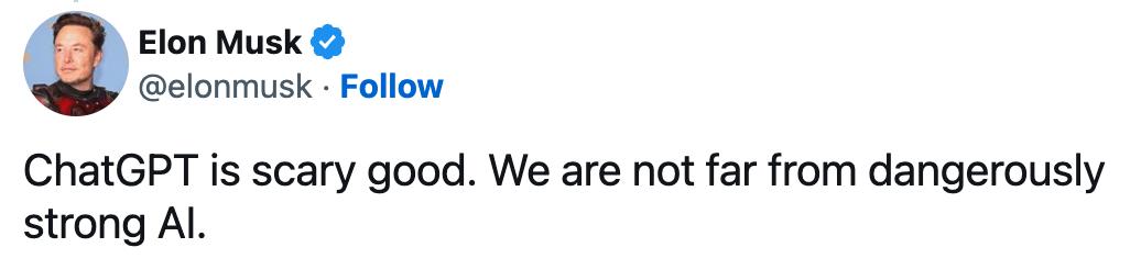 大概意思是 OpenAI 的技术目标是构建安全的 AI,确保 AI 的利益尽可能的防范和均匀分布,而 Musk 对于目前 AI 的态度就好像对待 Twitter 一样,作为 Twitter 的深度用户,看到平台上的内容和信息集中而不均匀,或者叫中心化,这对于每一个内容消费者来说并不是好事。