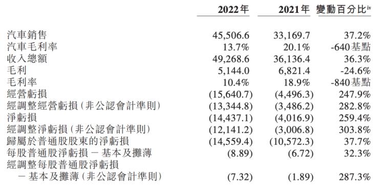 这种分化在亏损数据中也有所体现:理想2022年经营亏损为36.5亿元,亏损同比扩大259.3%,蔚来全年的经营亏损121亿元,同比扩大超过300%。