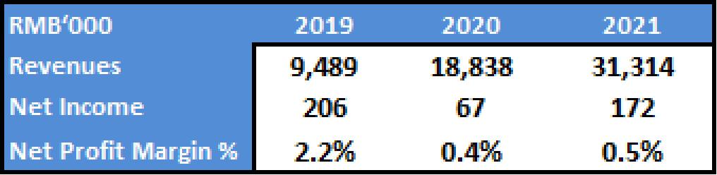 我们获得了这些公司在国家市场监督管理局的文件,并整合了它们在2019年至2021年的财务数据。