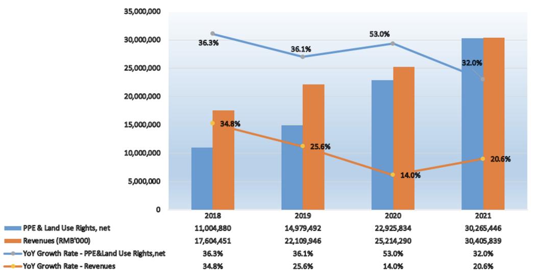 中通通过透支未来潜在的市场增长份额来超配实际的增长收入,从而试图证明PP&E(耐用资产)和土地使用的合理性,但他们似乎在没有战略引导的情况下积累土地。